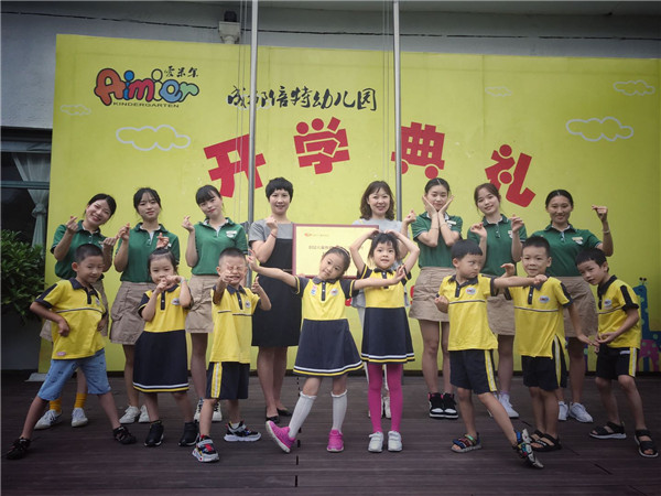升旗仪式后,园长妈妈接过话筒,亲切问候来园第一天的孩子们,并殷切希望孩子们在幼儿园每天开开心心,身体棒棒,快乐成长!同时 四川广播电视台妇女儿童频道(SCTV-7)授予倍特幼儿园人才培养基地的荣誉,在开学典礼上举行了授牌仪式。