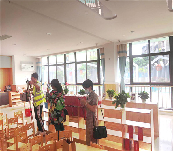 2020年8月31日,该园对小班组教室开展室内空气的治理及检测。本次检测,幼儿园邀请第三方——绵阳市凯乐检测有限公司进行检测,同时,也邀请了幼儿园的部分教师代表、家长代表参与了本次现场检测。