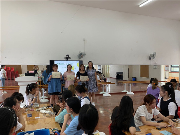 一场表彰拉开了庆祝活动的帷幕。幼儿园对在教玩具比赛评选活动中获得一、二、三等奖的老师们进行表彰,激励大家继续保持钻研业务技能的积极性。
