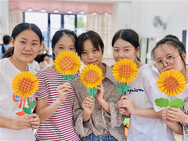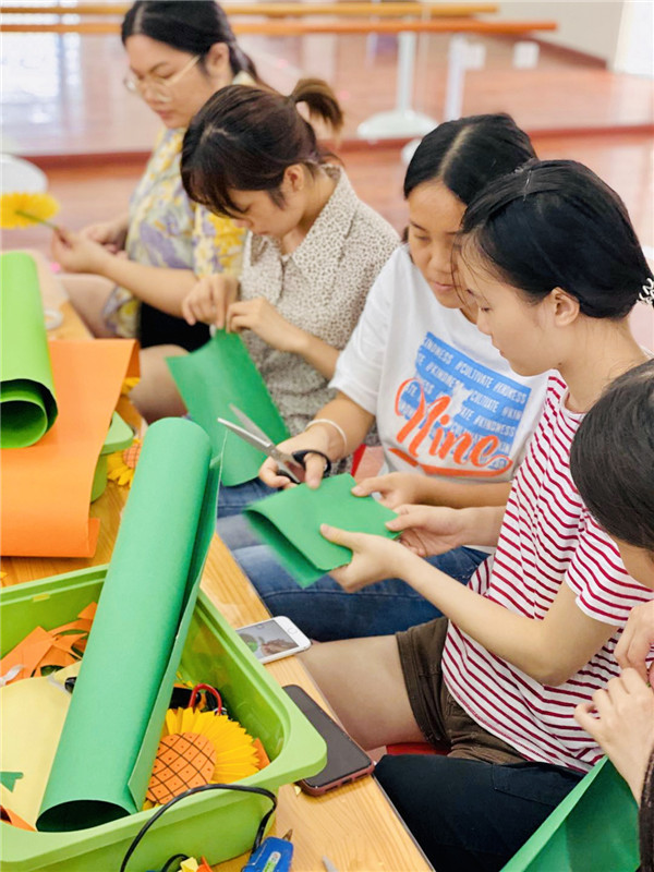 老师以博大的爱心和强烈的责任心去爱和温暖每一位孩子。在主持人李寒老师的带领下,老师们开始进行了太阳花的制作。老师们脸上的笑容犹如一朵朵美丽的太阳花绽放开来,温馨、浪漫且幸福。