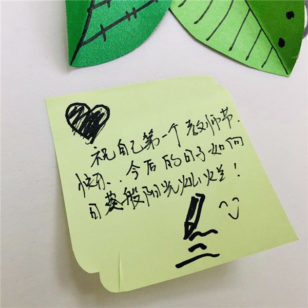 太阳花下,是二十七幼每一位教师亲手写下的爱心寄语,满含着对自己、对同伴、对天下每一位教师的温情祝福。