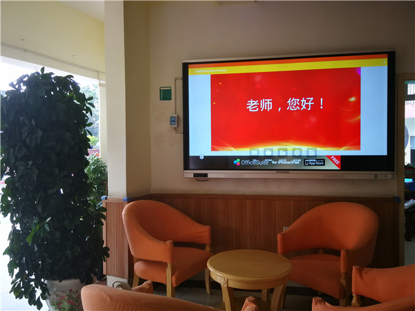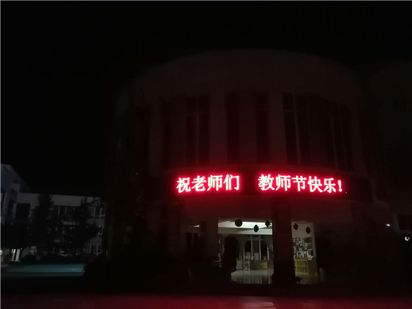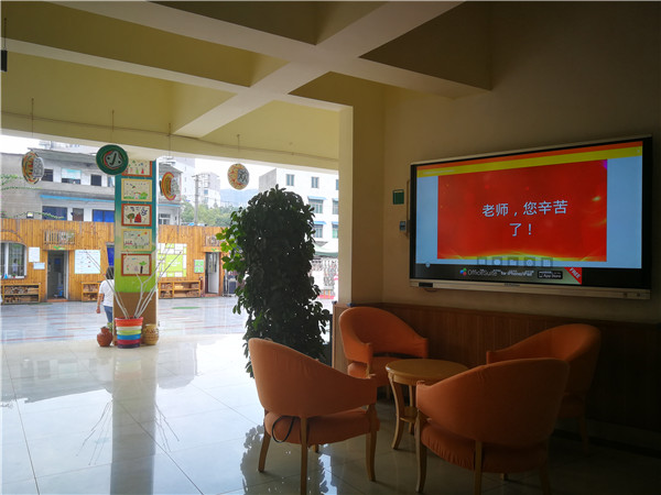 教师节当天,机幼接待室的电视主屏打上了“老师,您好!”“老师,您辛苦了!”等温馨话语,表示对所有机幼教师真切的问候。傍晚,机幼的LED主屏上也准时亮起了“祝老师们,教师节快乐!”几个大字,并且循环播放,表达出机幼对教职工们深深的节日祝福。