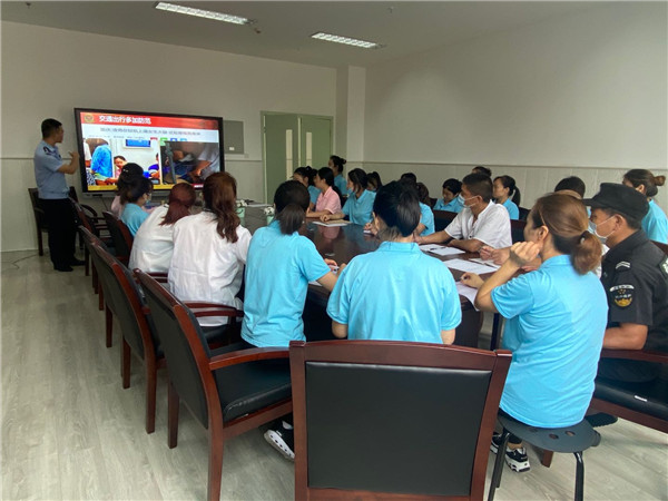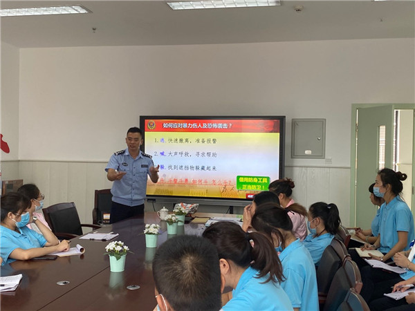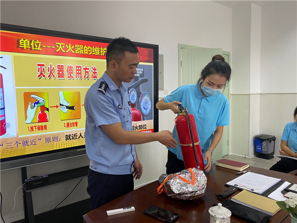 应急疏散演练前,消防大队的黄教官到园对教职员工进行培训,向大家讲解遇到危险应该如何保护自己,并就日常生活中最容易发生的火灾进行了详细讲解,同时指导大家正确使用灭火器。