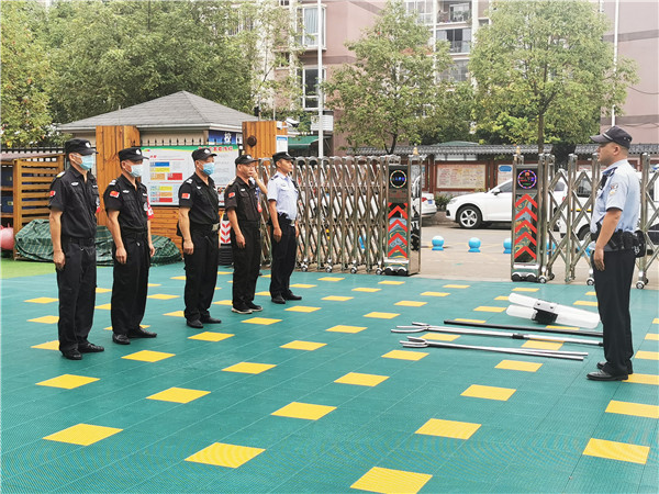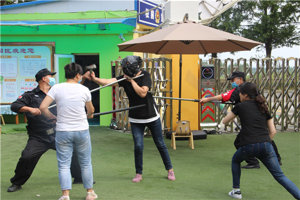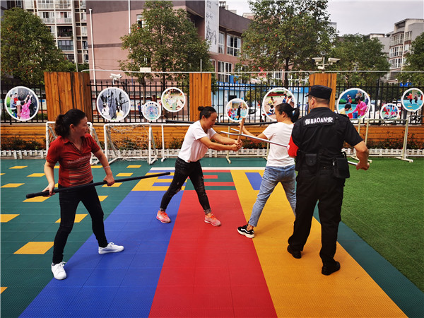 幼儿园特邀法治辅导员张诗启警官到园,对安保人员进行反恐防暴知识及器械使用培训,不断提高安保人员的警惕性,更好的巩固防暴技巧。