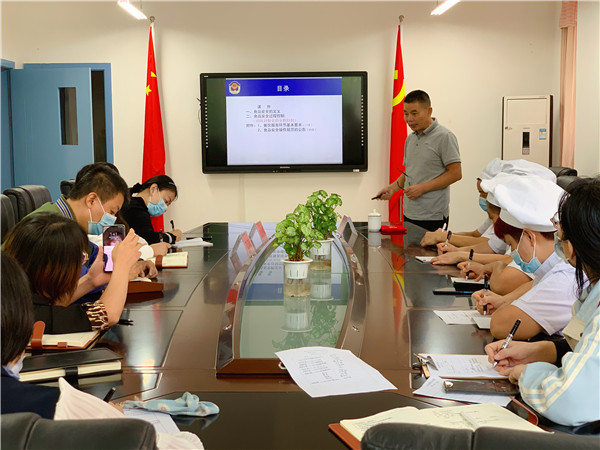 最后,周科长对幼儿园各部门负责人、厨房工作人员及保健医生开展了食品安全知识培训,从食品安全的定义、食品安全操作规范、食品安全应急管理等方面进行了详细讲解。