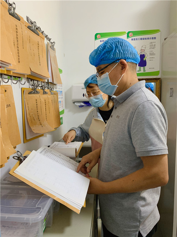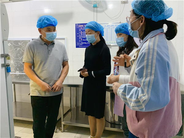 在皮园长的带领下,周科长对幼儿园厨房进行了实地检查,对食材验收、操作流程、清洁消毒、各类台账等进行了询问查看。查验后,周科长对幼儿园厨房的各项工作给予了高度肯定,同时也给幼儿园今后的工作提出了更高的要求。