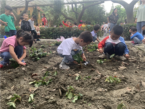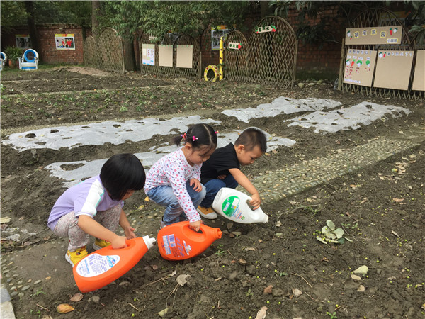 自从播下了种子,孩子们就像种下了一个希望,每天户外活动时,都会到种植园看看种子是否发芽,草莓苗是否成活。给干枯的菜园、缺水的苗儿浇水,拔掉地里的野草、整理地上的落叶……相信在孩子们的细心照顾下,种子们一定会快快长大。