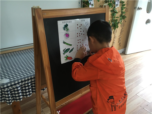 孩子们和老师一起了解成都地区秋期适合种植的蔬菜,并投票选择自己想要种植的蔬菜,观察蔬菜种子,筛选出适合播种的种子。