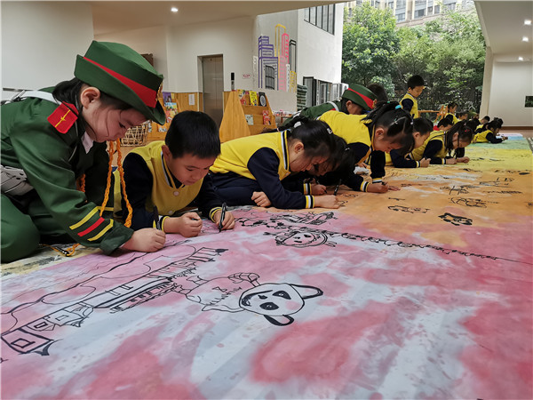 在国庆节来临之际,为助力2021年第31届世界大学生夏季运动会在成都顺利举行,2020年9月29日上午,成都市第五幼儿园培风分园(以下简称:五幼培风)开展了“爱成都·迎大运——绘蓉宝”手绘长卷喜迎国庆特别活动。