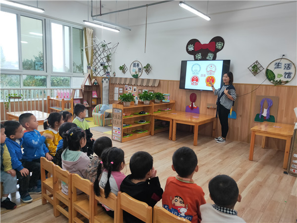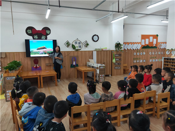 为加强孩子们对祖国妈妈的了解,增强民族自豪感,老师带着孩子们了解了国庆节的来历、国庆节是哪一天,并认识了国旗、国徽、国歌以及中国地图,孩子们在地图中找到了首都——北京,当老师介绍到长城的修建时,激发了班上小朋友们的探索欲望。