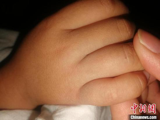 图为赵女士女儿手上的疑似针眼。赵女士供图