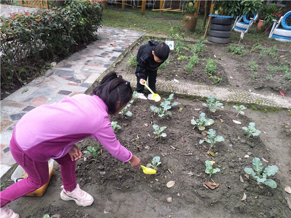 10月16日,南瓜肥料已经发酵完成,大家开始用南瓜肥料为蔬菜施肥!希望蔬菜有了南瓜肥料给的营养能快快长大!