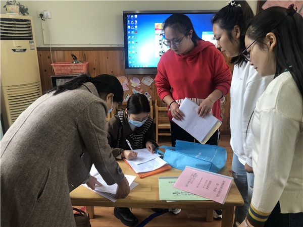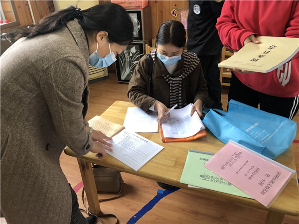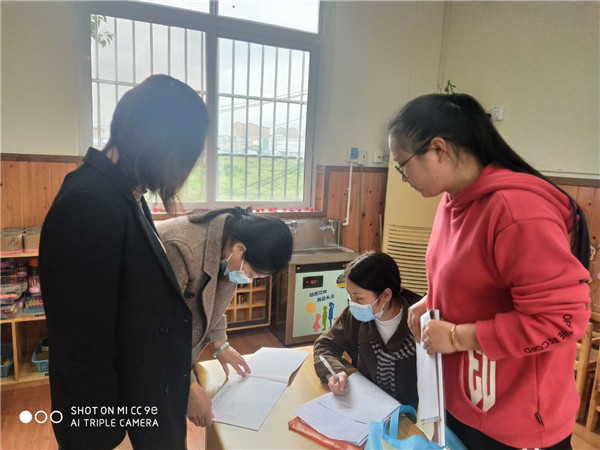 督学人员亮证入园,保安询问并测量体温后,在大教研组长左莉莉老师的带领下,首先对幼儿园大环境及各班级的消毒情况进行了查看。接着,对中二班的班务日志、晨检记录、班级卫生消毒记录等资料进行了仔细查询并针对班级传染病预防工作的实际情况与中二班的保教人员进行了沟通交流。最后,督学人员结合幼儿园实际情况,围绕整个园所的传染病预防工作进行了指导和交流。