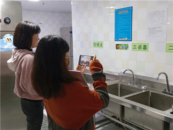 在园长胡宗俊的陪同下,办公室黄老师带领检查组仔细查看现场。检查组一行先后深入教学楼、绿化种植区、食堂、卫生间等用水集中地,详细查看学校用水、节水情况。