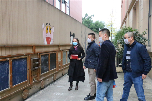 10月30日下午,青羊区教育局党委书记高文、区安全管理与应急处置科科长何剑及安全科廖晓明来到成都市泡桐树幼儿园苏坡分园(以下简称:泡幼苏坡)视察安全工作。园长郭凤华就现阶段安全工作情况以及近期幼儿园传染病防疫工作进行了详细介绍。