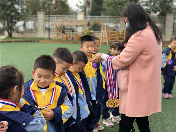 比赛结束后,举行了隆重的颁奖仪式。园长妈妈亲自为运动员们颁发奖牌。双流区金桥红石幼儿园大班年级组秋季运动会圆满结束。
