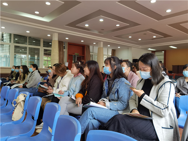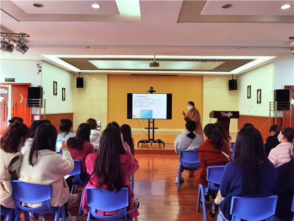 成都市青羊区天府幼儿园作为成都市教师发展基地校,长期承担教师专业发展的教育培训工作。11月6日,青羊区天府幼儿园锦绣园园长,前任青羊区天府幼儿园科研室主任,青羊区天府幼儿园“十二五”“十三五”市级、区级课题主研人员毛芳芳作为本期“成都市中小学继续教育课程线下培训”主讲教师,为学员们带来专题讲座——《幼儿园语言领域活动的组织与实施》。成都市第四区域教育联盟青羊区天府幼儿园教育共同体成都市天府新区第一幼儿园、蒲江寿安中心幼儿园、郫都区犀方路幼儿园、简阳平泉镇幼儿园教师,成都市青羊区天府幼儿园教育集团骨干教师以及青羊区姊妹园所教师参与了本次线下培训活动。