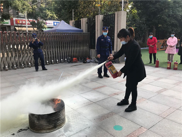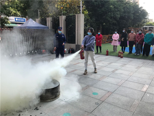 演练前,消防教官给全园师生讲解了灭火器的使用方法,并进行现场演示。“一摇、二拔、三喷”的使用步骤口诀让师生们对使用灭火器有了初步的了解,老师们纷纷上前体验灭火器使用的操作流程。