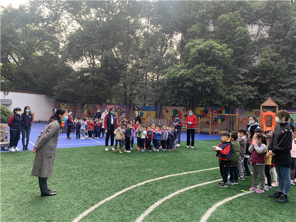 全园幼儿在到达指定的安全位置后,各班级教师迅速就位,在维持好本班幼儿纪律的同时就地待命清点人数,及时把幼儿人数及安全情况向安全演习总指挥报告。最后,园点负责人对本次消防疏散演练进行了总结。