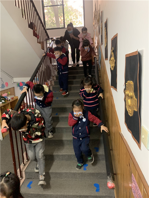 随着紧急的警报声响起,“消防疏散”活动开始了。全园幼儿在老师的带领下,井然有序的猫着腰、用湿毛巾捂住口鼻沿着安全通道紧急疏散,离开教室并撤离到安全地点。同时,幼儿园消防安全小组成员也紧急行动,各就各位,确保每一位孩子都能够安全疏散,保证不落下一名幼儿和教师。从火警警报响起到全园从教室撤离到校园安全区域,整个演练过程做到快速、安全、有序。