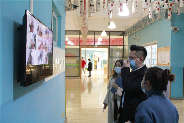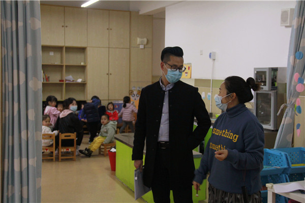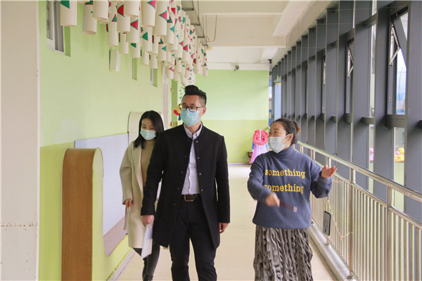 在后勤主任毛老师的陪同下,吴老师巡查了园所环境,了解幼儿园常态化疫情防控措施、泡幼近期各项工作落实情况。