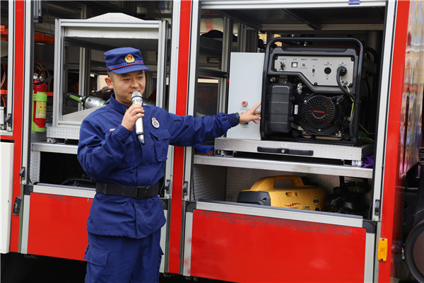 接下来,全体教职工、厨房及安保人员学习了灭火器的使用方法,在实际操作中感知安全的重要性。孩子们还参观了消防车,消防员叔叔用通俗易懂的语言给孩子们讲解了消防车的构造、内部装置、消防物品,并讲解了消防安全常识以及逃生自救知识。