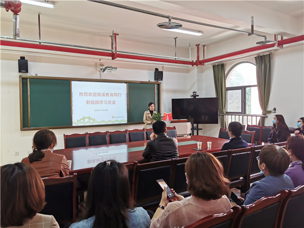 11月18日下午,宜宾市南溪区教体局副局长熊兴带队,率教体局、师训中心相关人员和部分校园长等一行16人赴成都市泡桐树幼儿园苏坡分园(以下简称:泡幼苏坡分园)考察交流。
