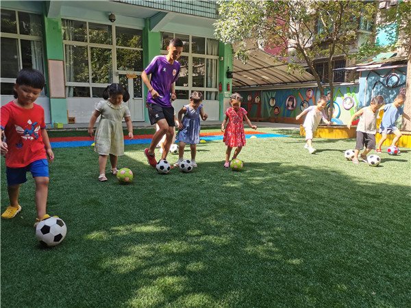 自2015年成都市青羊区天府幼儿园虎虎足球队成立起,幼儿园树立以足球立特色、以足球创品牌、以足球促发展的工作思路,全面开展形式多样的幼儿足球教育活动与游戏活动,不断丰富幼儿体育活动,同时融入自信、合作、快乐、拼搏等足球精神,促进幼儿品格培养。幼儿在足球活动中享受运动的乐趣,获得身心的健康发展。