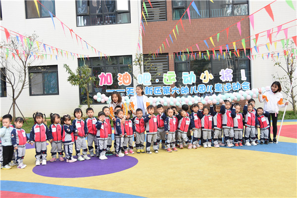 天府新区第六幼儿园(以下简称:天府六幼)的运动会,像过节一样热闹,像玩游戏一样开心,是关于坚持、成长、勇敢、团结的游戏。天府六幼的运动会是幼儿园园本课程建设的探索;是国家“体育固本”教育改革号召的尝试;是幼儿园活动变革课程创生的彰显。