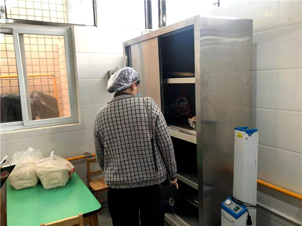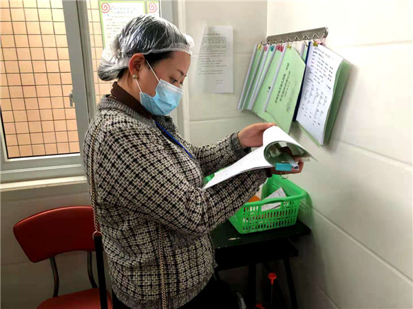 督学人员亮证入园,保安询问并测量体温后,在大教研组长左莉莉老师的带领下,主要对食堂的食品安全资料和物品规整情况进行了仔细查看和问询。边婧督学通过对幼儿园食堂各方面工作情况进行全面细致的督导后,认为该园食堂各项工作全部达标;同时也提出以下宝贵意见:第一、食堂工作人员应随时注意关好食堂各个地方的门,并给冰箱上一把不能随手打开的锁以保证食品安全;第二、幼儿园需将食品卫生公示栏的内容填写完整,且必须将食品安全负责人的健康证公示出来。