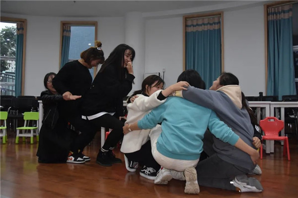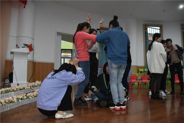 戏剧培训,不是只有教学培训,同时还是演员培训,因为老师必须要成为一个真正能分享的人,才能教会孩子在戏剧课程中要学会的换位思考或是用更大的视野去看事情,结合戏剧帮助孩子进行语言与表达力、表现力的提升,引导孩子进行即兴人物创作与扮演,鼓励孩子大胆的表现。成都天府新区第八幼儿园(以下简称:天府八幼)邀请自由戏剧老师到园进行教师戏剧培训活动,自由戏剧老师用她们的专业与激情带领老师们一起游戏、律动、表演,通过戏剧《青蛙王子》《海底》,从进行自我介绍到集中注意力的小游戏,再到模仿动物解放天性,最后小组合作完成一个场景,老师们跟着自由戏剧老师由易到难、由浅入深的进行了一次戏剧体验。