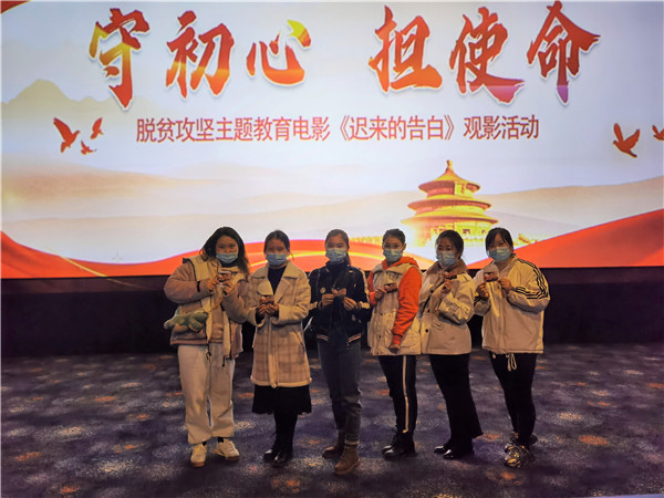 2020年是全面打赢脱贫攻坚战的收官之年,为大力宣传扶贫先进典型事迹,讴歌脱贫攻坚伟大历程,教育引导教职工自觉投身到脱贫攻坚战的热潮之中。2020年11月27日,双流区西航港常乐幼儿园工会委员会组织教职工观看了电影《迟来的告白》。
