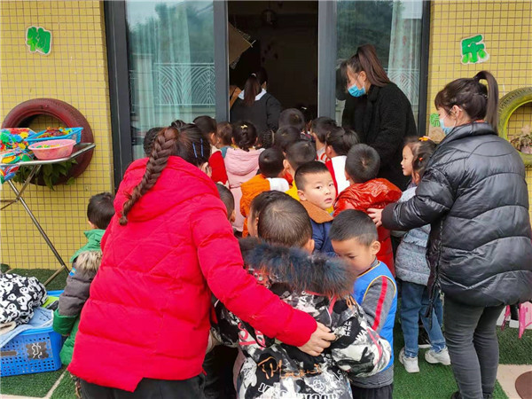 班级老师接到应急响应,迅速有序地组织幼儿撤离到就近室内场所,并快速关闭门窗、清点幼儿,对受到惊吓的幼儿实施安抚工作。