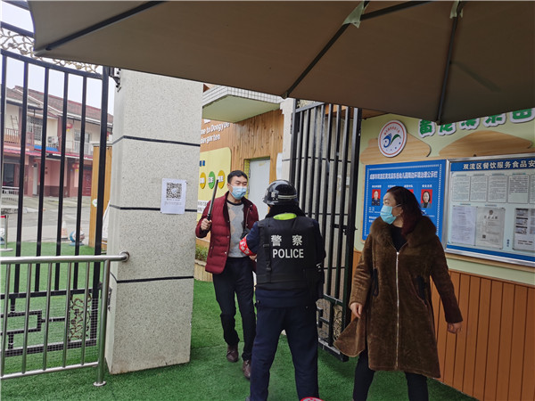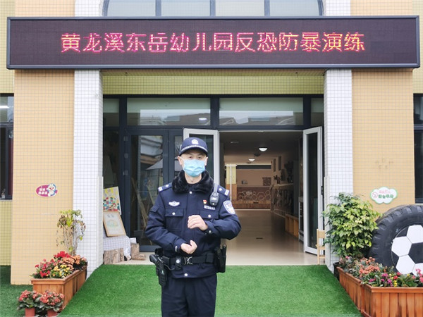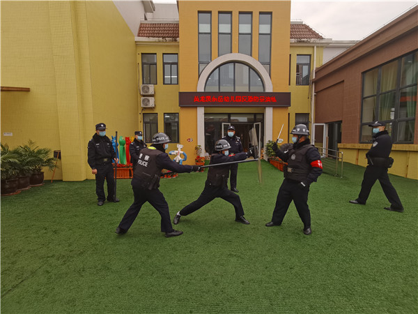 为了保障幼儿在园的人身安全,进一步提高师生的自救及抵御外来侵害行为的能力,确保在突发性伤害事件发生时,能及时、安全地疏散,减低、杜绝伤亡事故的发生,保证幼儿的人身安全,成都市双流区黄龙溪东岳幼儿园于2020年12月10日,开展了“反恐防暴”应急演练。本次演练特邀黄龙溪派出所的4名警官和两名家委会代表参加。