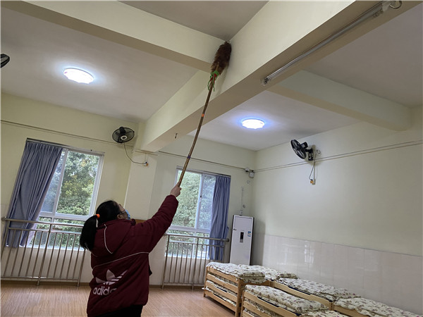 活动前,保健医生结合幼儿园的实际情况制定了“爱国卫生运动之大扫除方案”,按照方案,大家积极响应、分工合作,以教室、寝室、办公室等公共区域作为重点,彻底清除卫生死角,清扫了校园周边地面,清除痰迹、污物、废弃物,做好“门前三包”,清除全园垃圾。