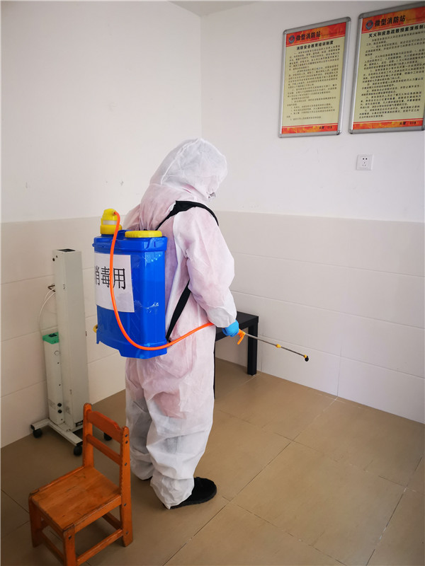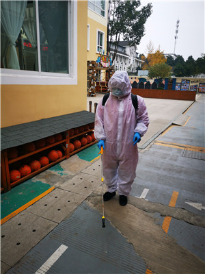 幼儿园消毒组做好个人防护对隔离室及外环境进行消毒,班级由保育老师进行消毒。