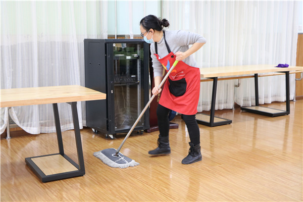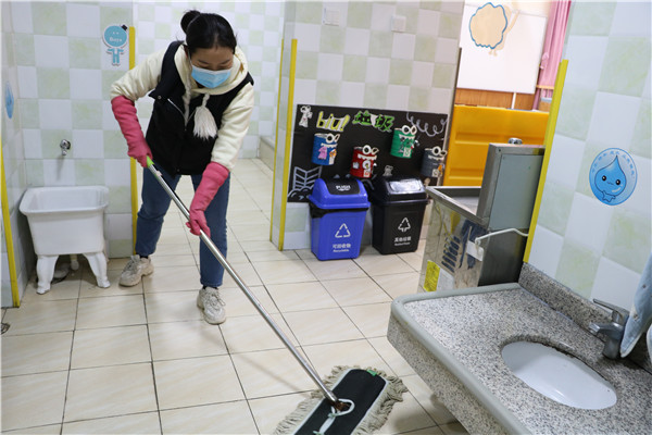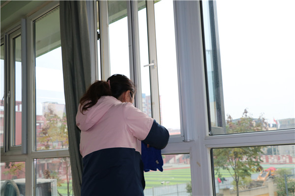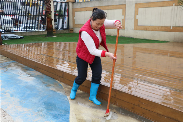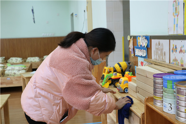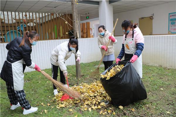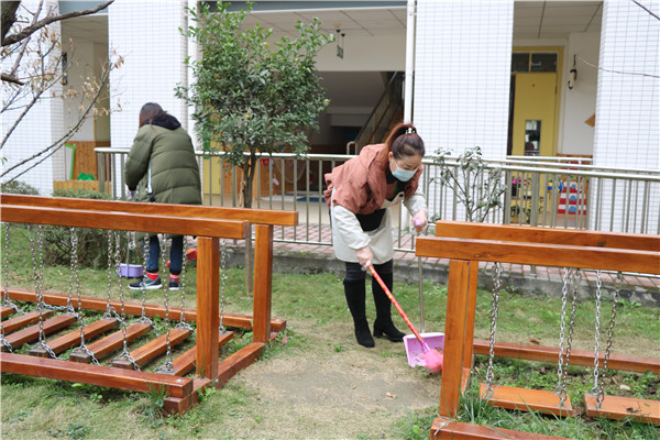 天气虽然冷,却依然挡不住老师们爱劳动的心,全体教师发扬不怕苦、不怕脏的精神,对班级教室、多功能室和户外区域每个角落进行彻底的清扫及消毒,不留死角。