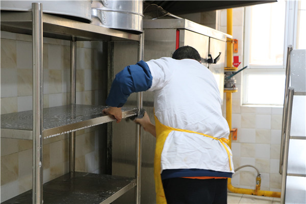 食堂的卫生工作关乎幼儿的饮食安全,食堂工作人员在做好日常清洁工作的同时,此次特别针对卫生死角进行消毒,食堂工作人员发扬不怕脏、不怕累的精神,展现了严防“病从口入”的责任担当。