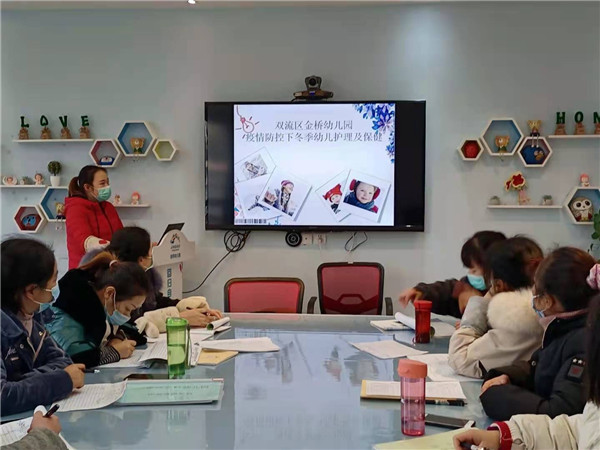 寒冬已至,加上疫情的严峻,家长们又紧张又担心,为了尽量减少孩子生病机会,最大限度地保证他们的健康,让家长放心。12月16日中午,成都市双流区金桥幼儿园保健医生对全体教职工进行了疫情防控下幼儿秋冬季护理培训。