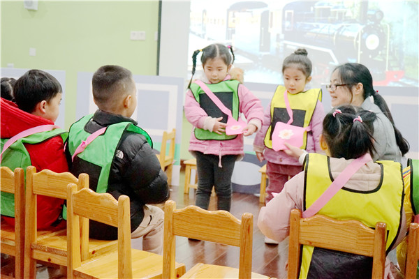 吴小芳老师带来的课例《开火车去旅行》,道具丰富,情景充满趣味性,从模式单元的识别、复制和填充三个维度出发,让幼儿在开火车的情景中玩游戏,体验模式单元的变化,尝试以自己为教具畅玩游戏,从而建构模式经验的过程。