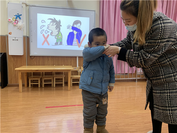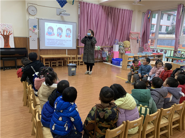 为增强幼儿的疫情防控能力,各班级也开展了形式各样的活动。小班组开展了学习“疫情三字经”、正确佩戴口罩等活动。