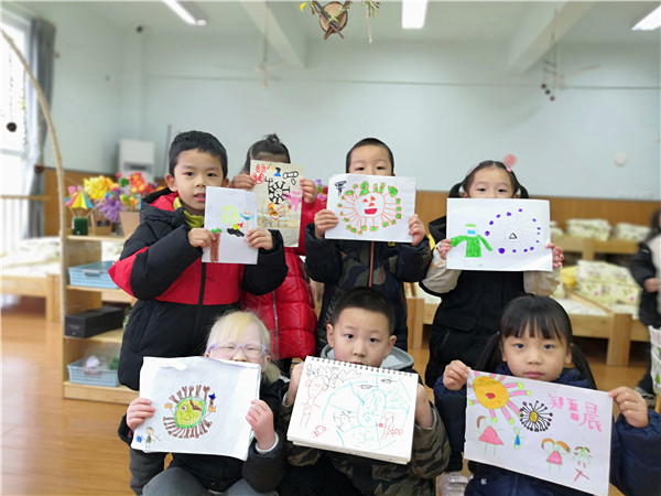 大班组通过绘画的方式来表示战胜疫情的决心和美好期望。