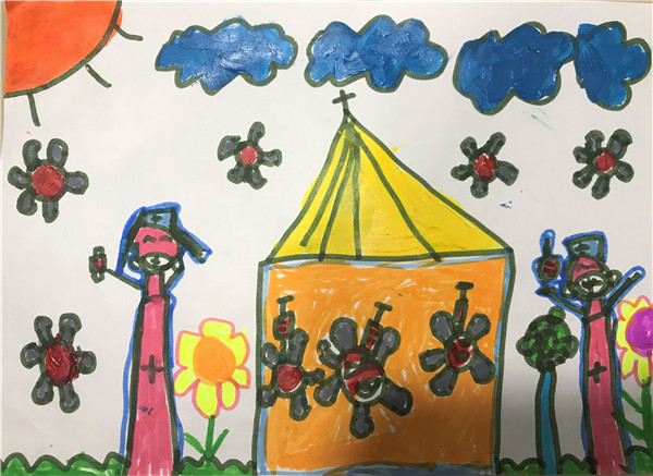 这些充满想象力的画面,正是孩子们笔下的抗疫世界,稚嫩却又真挚地表达了他们对抗击疫情的信念。