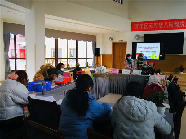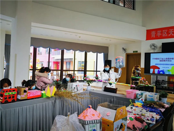 2020年11月,青羊区天府幼儿园锦绣园参加了青羊区教育科学院组织的“STEM教育理念下的幼儿园区域活动的实践研究成果分享”成果推广会,业务园长贺黎及时进行了二次培训。为了培养具有创新思维、探究能力、合作学习能力的未来人,大家需要在学前阶段利用“师幼5G赋能”教育不断推进班级师生共构主题活动、区域活动的生成和发展。2020年12月,成都市青羊区教科院学前教研“STEM理念下幼儿奇思妙想大制作展评活动”正式拉开帷幕,天府幼儿园锦绣园于12月18日开展了园级展评活动。