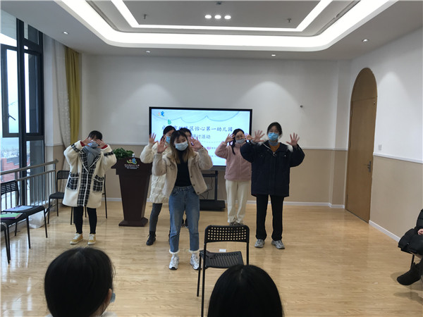 讨论过后,各班教师依次展示自编操节。每当展示结束,教师们都表达了对该操节的看法,并对动作优美、运动量适宜、符合幼儿身心发展规律的操节进行了记录。