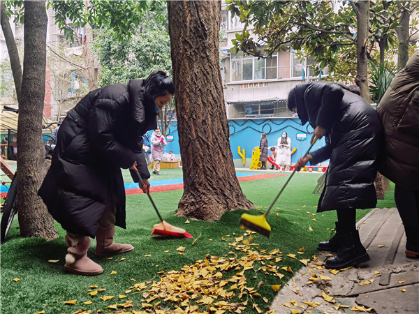 抗击疫情始终在线,守护健康从未停步。2020年12月31日上午,成都市青羊区天府幼儿园开展“‘疫’尘不染迎新年”爱国卫生运动,全园教职工扫尘除灰、清扫落叶、消杀环境、清理卫生死角,创设卫生、干净、整洁的校园环境,喜迎2021年的到来。