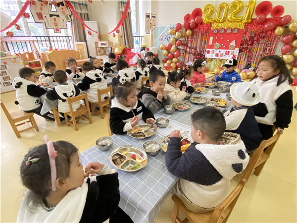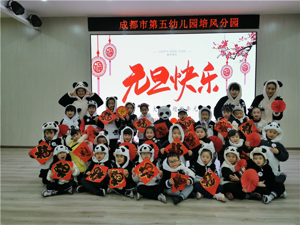 辞旧迎新之际,成都市第五幼儿园培风分园(以下简称:五幼培风)的大朋友和小朋友摇身一变成为一群可爱的“熊猫”,开展了“庆元旦·迎新年”活动。