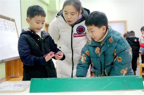 徐静老师带来的集体活动《好玩的扑克龙》,利用生活中容易找到的、幼儿熟知的扑克牌作为游戏材料,巧妙设计游戏环节,熟悉扑克牌属性特征、识别扑克龙规律、复制扑克龙、合作创作扑克龙,迁移创作舞龙动作。幼儿思维活跃,大胆表达,充足的操作时间给了他们充分感知、体验、尝试的机会,在一次次的游戏中,理解了模式的多样性和多种表征方式。