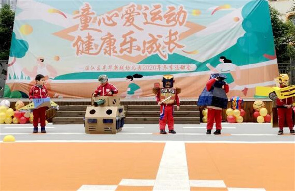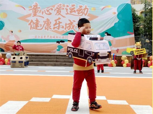 最亮眼的还属“环保走秀”,各种材质的纸经过贝尔班小朋友设计创造,变身成为大黄蜂汽车、宇宙飞船、装甲车,引爆了全场运动员的激情。