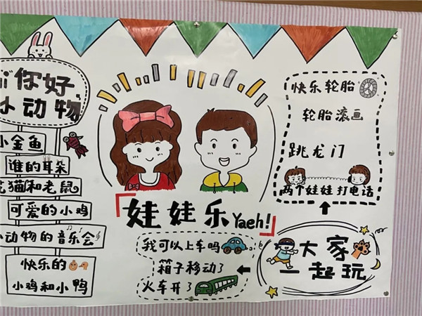 2020年12月,在《娃娃乐》主题课程开展下,温江区光华新城幼儿园小班年级组的各个班级针对班级幼儿不同的兴趣点和角度梳理出幼儿感兴趣的主题,生成了灵动有趣的教师海报。同时,围绕主题活动各班级还开展了各式各样的微课程。